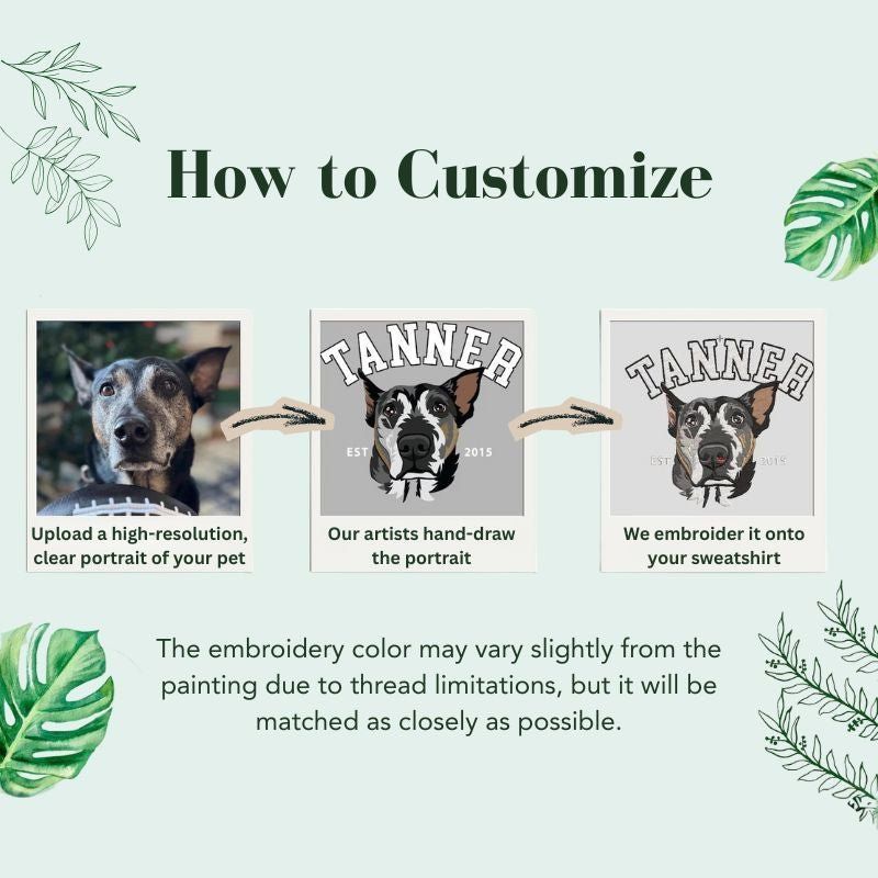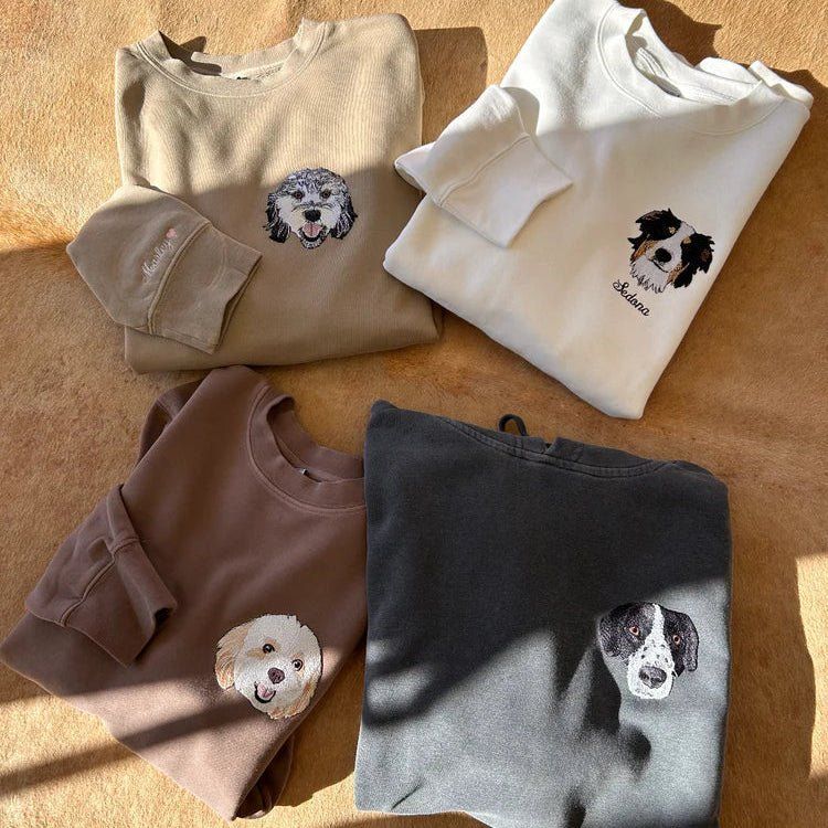 Unser personal isiertes Haustier-Porträt-Sweatshirt ist individuell auf Ihr Foto gestickt und fängt jedes Detail ein, das Ihr Pelzbaby einzigartig macht.