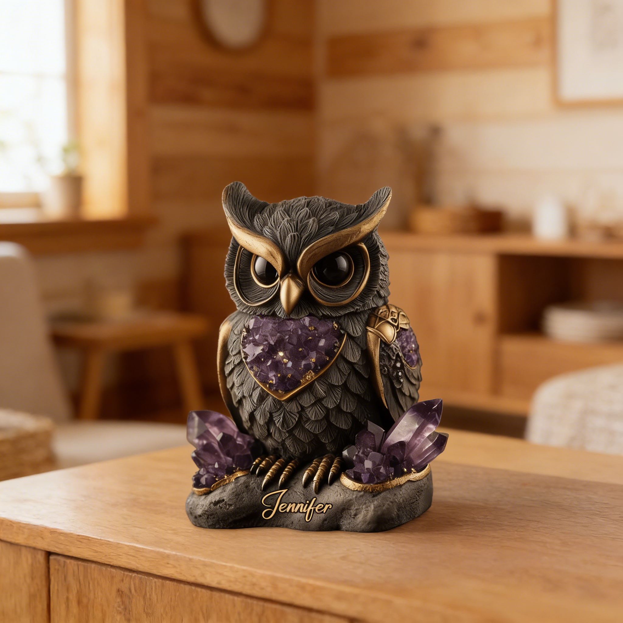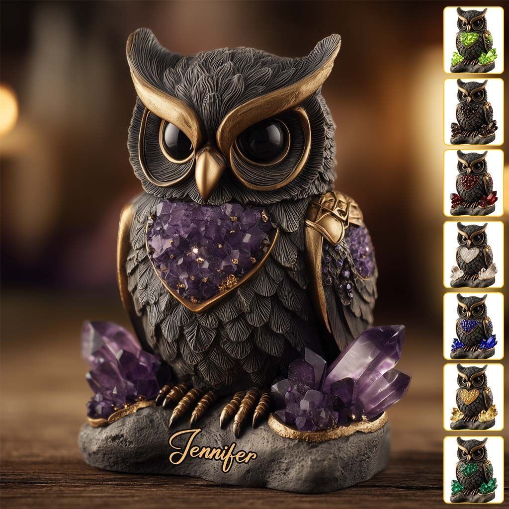 Amethyst-Rosenquarz-Rubin-Eule – Personalisierte Eule, individuell geformte Acrylplakette