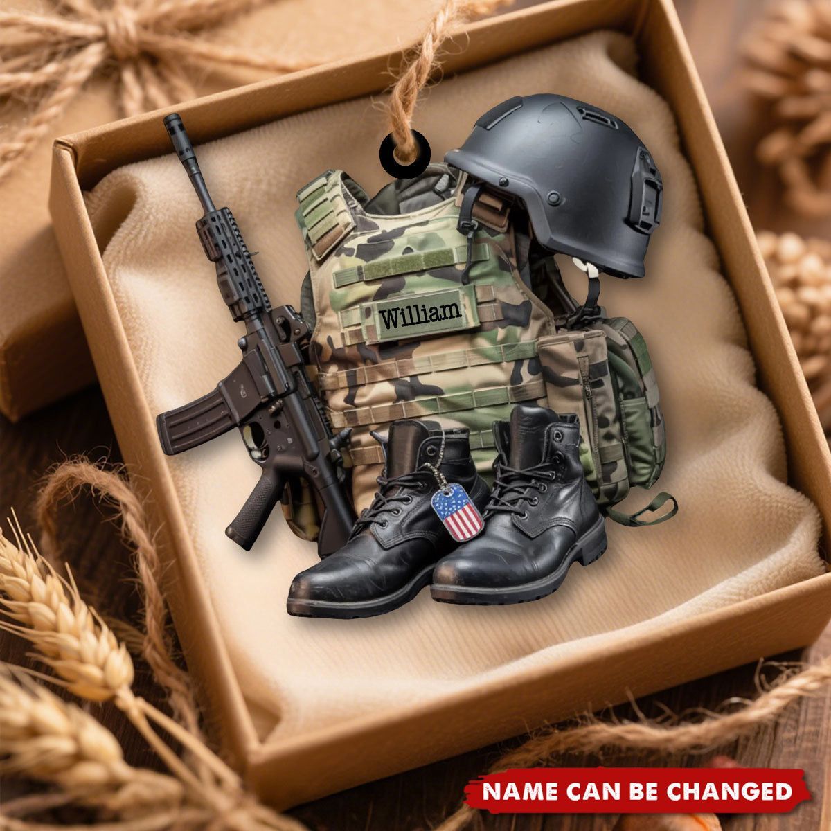 Ce Noël, célébrez le courage et l'engagement qui se cachent derrière l'uniforme. Personnalisée avec un nom, cette décoration capture la fierté, le sacrifice et l'esprit inébranlable de ceux qui servent, pour que nous puissions célébrer en paix. Un hommage intemporel à accrocher avec gratitude.