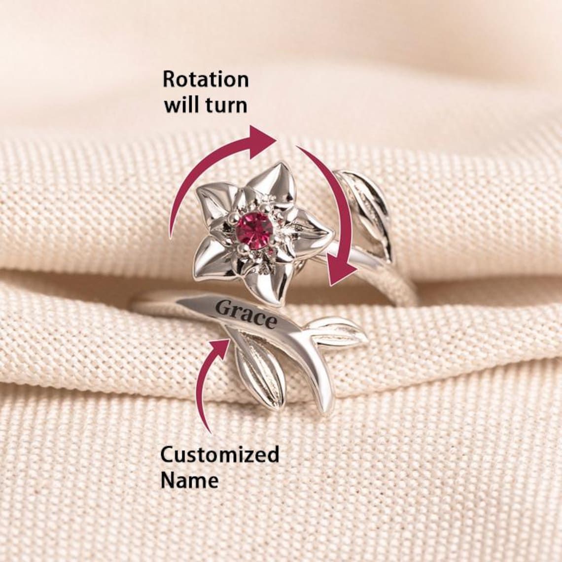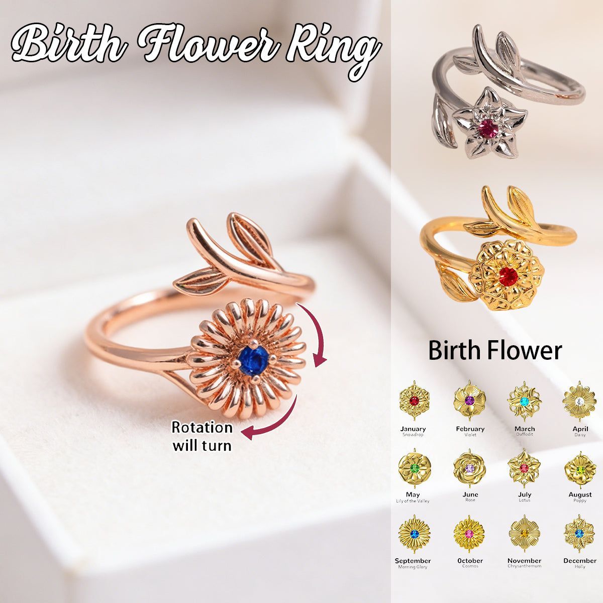 Personalisierringer mit Geburtsblume und Fidget-Spinner – Geschenk für Mama