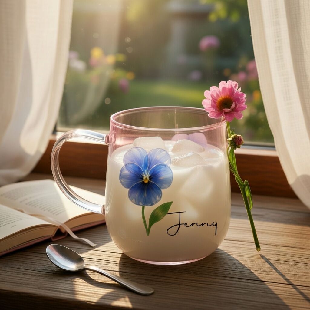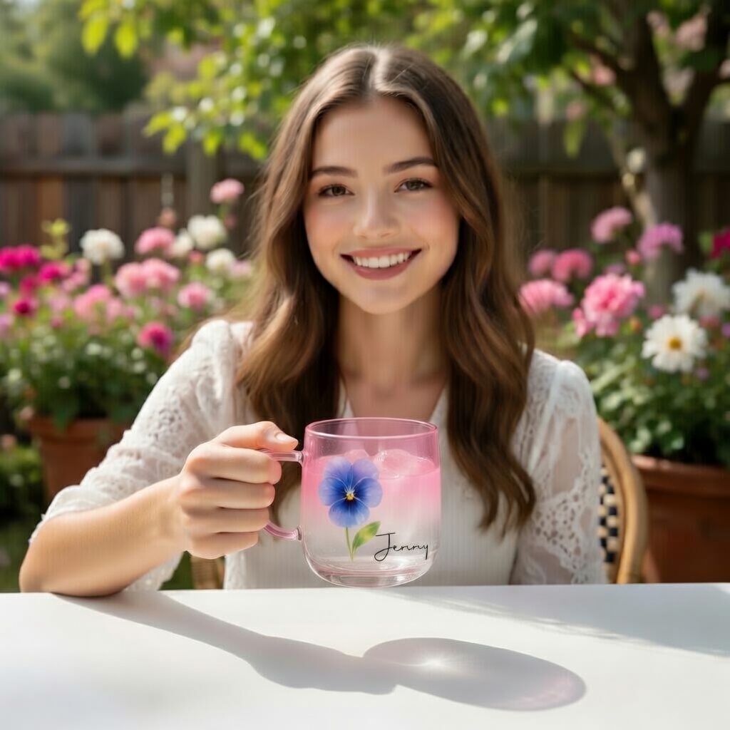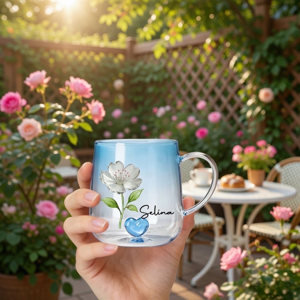 • Name: Geburtsmonats-Kristallblume – Personalisierter Glasmug mit Farbverlauf 🌸