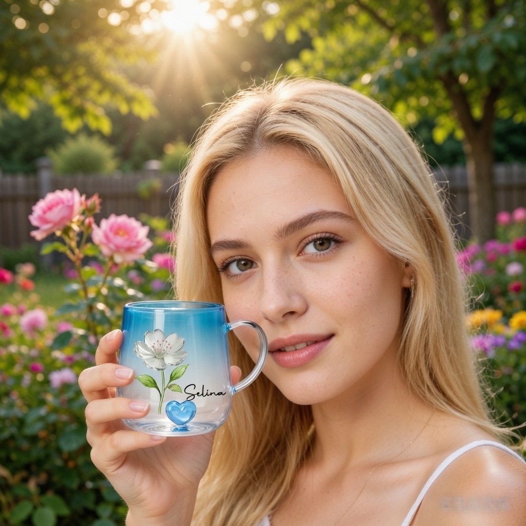 1 x Personalisierter Farbverlaufs-Glasmug mit Kristallblumen-Design 🍶