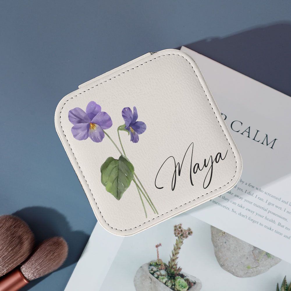 Geburtstagsblumen mit Namen – personalisierte Schmuckschatulle