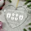 Erstes Weihnachtsfest als vierköpfige Familie Fußabdrücke – Personalisierte herzförmige Glasverzierung