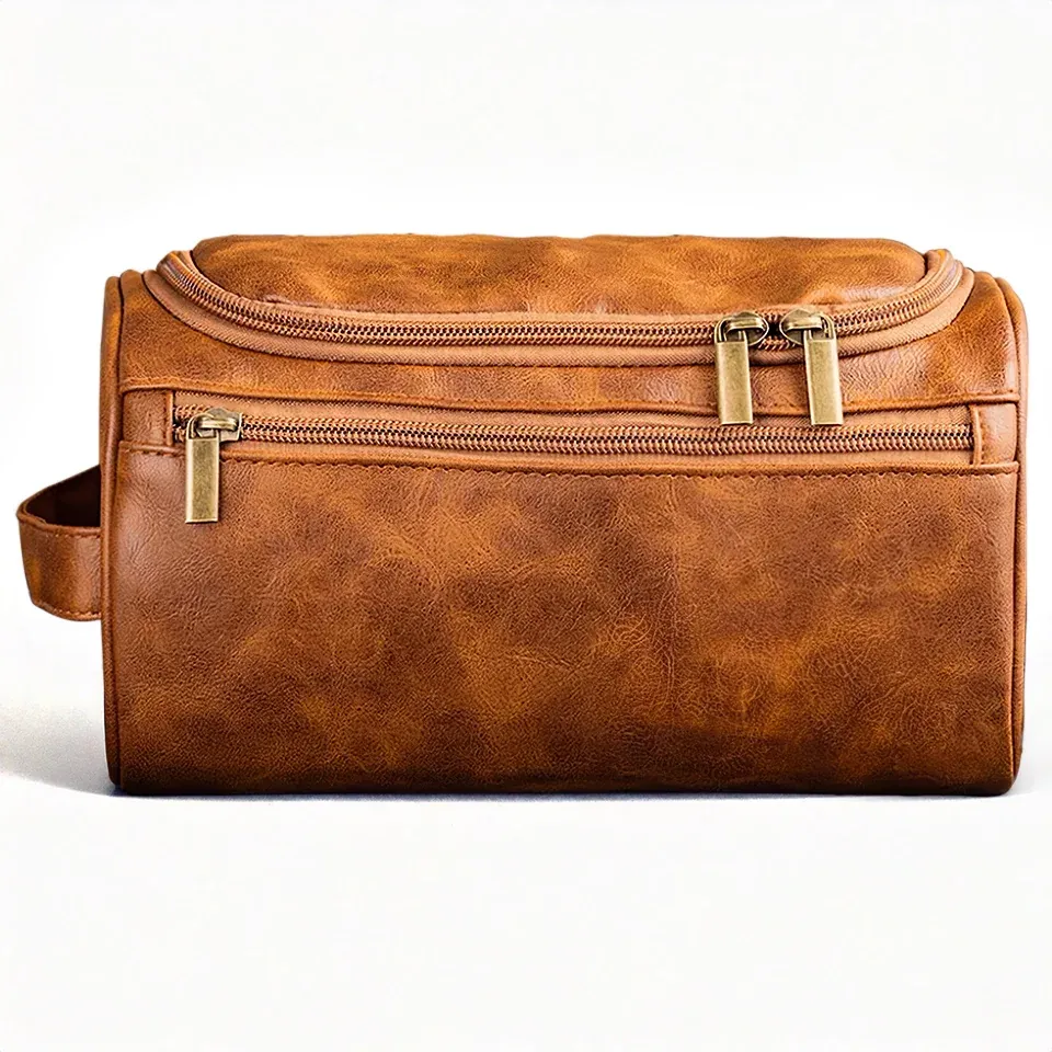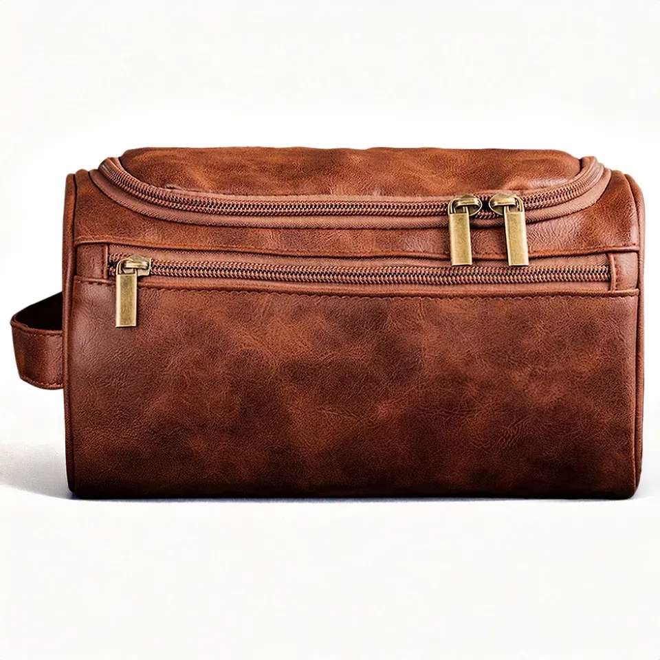 Individuell gravierte Kulturtasche aus Leder – Personalisiertes Geburtstagsgeschenk für Papa, Bruder, Opa, Ehemann – Für den Mann, der immer unterwegs ist