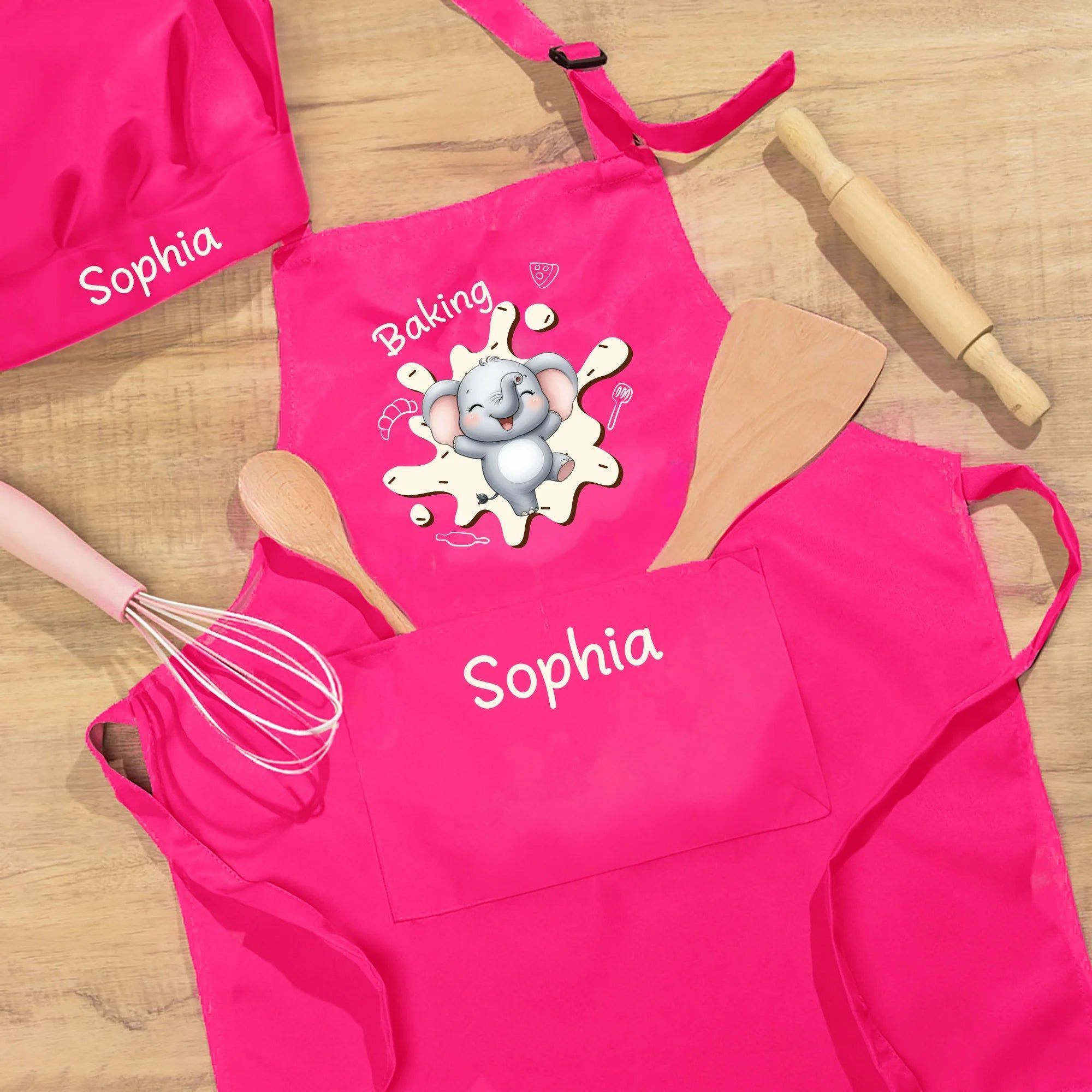 Personalized Cute Animal Fantasy Unicorn Adjustable Kid Apron Chef Hat Set with Name Cooking Handcraft Activities Birthday Holiday Gift for Kids