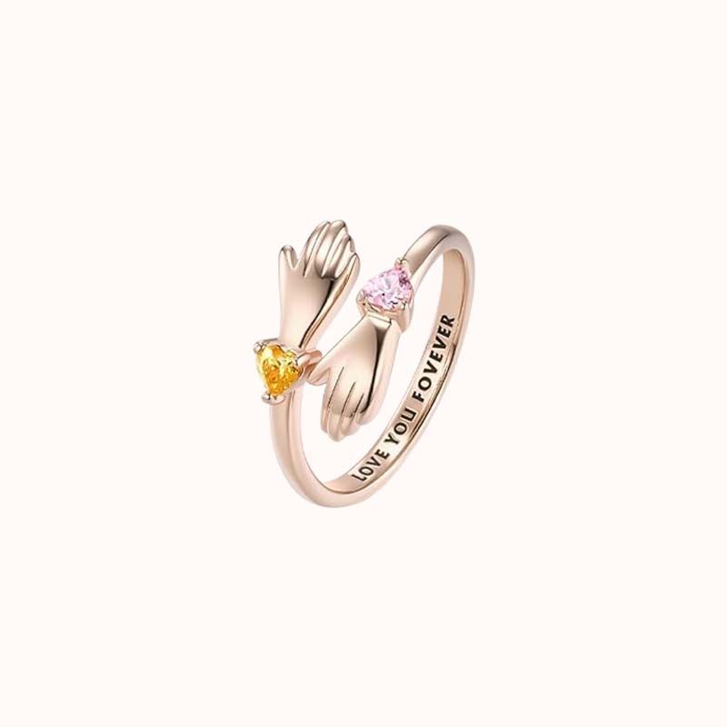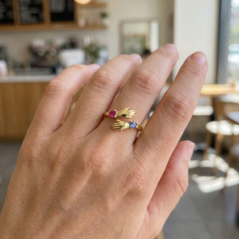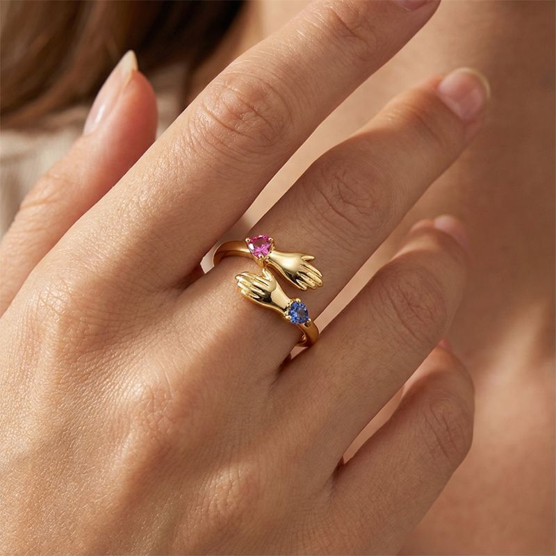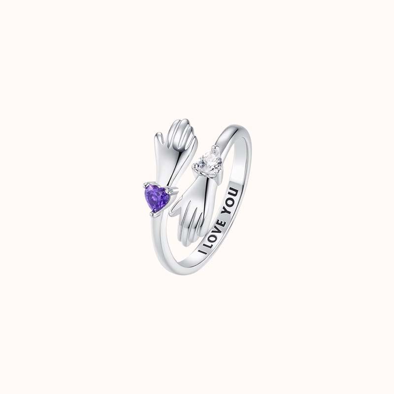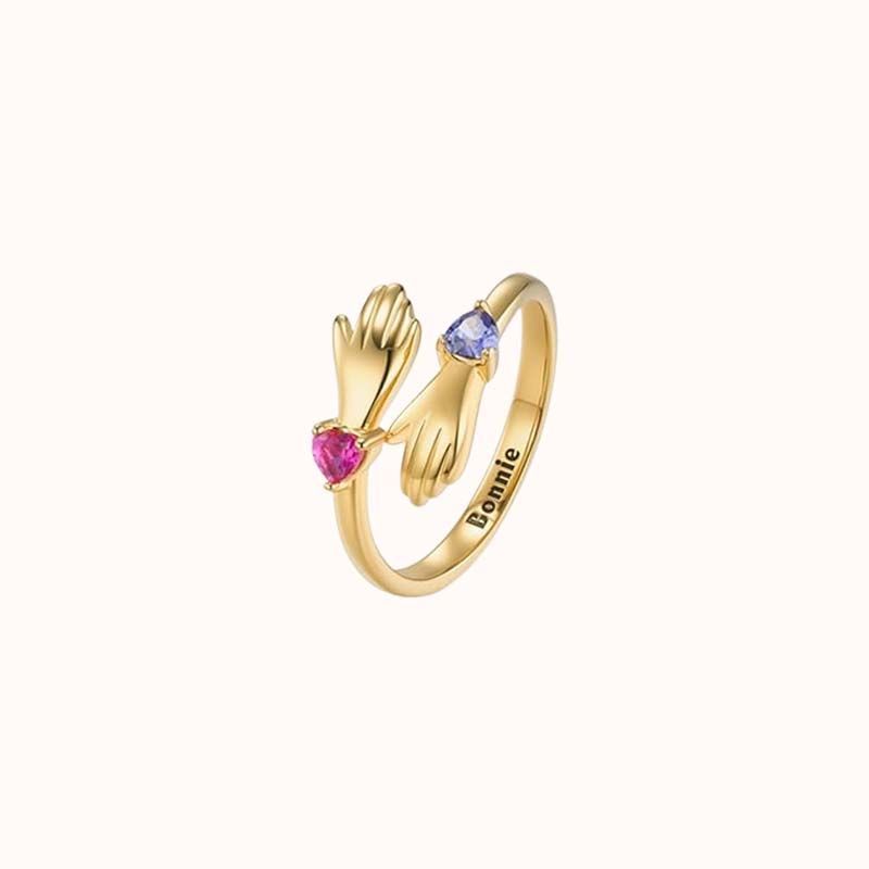 Personal isierte Doppel Birth stone Hug Paar Ring