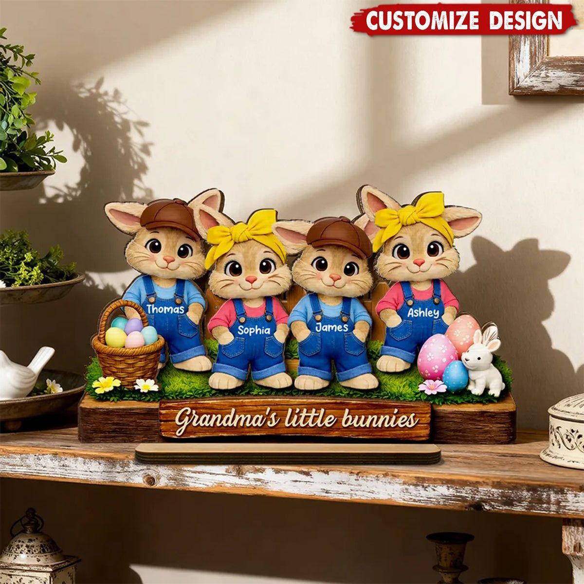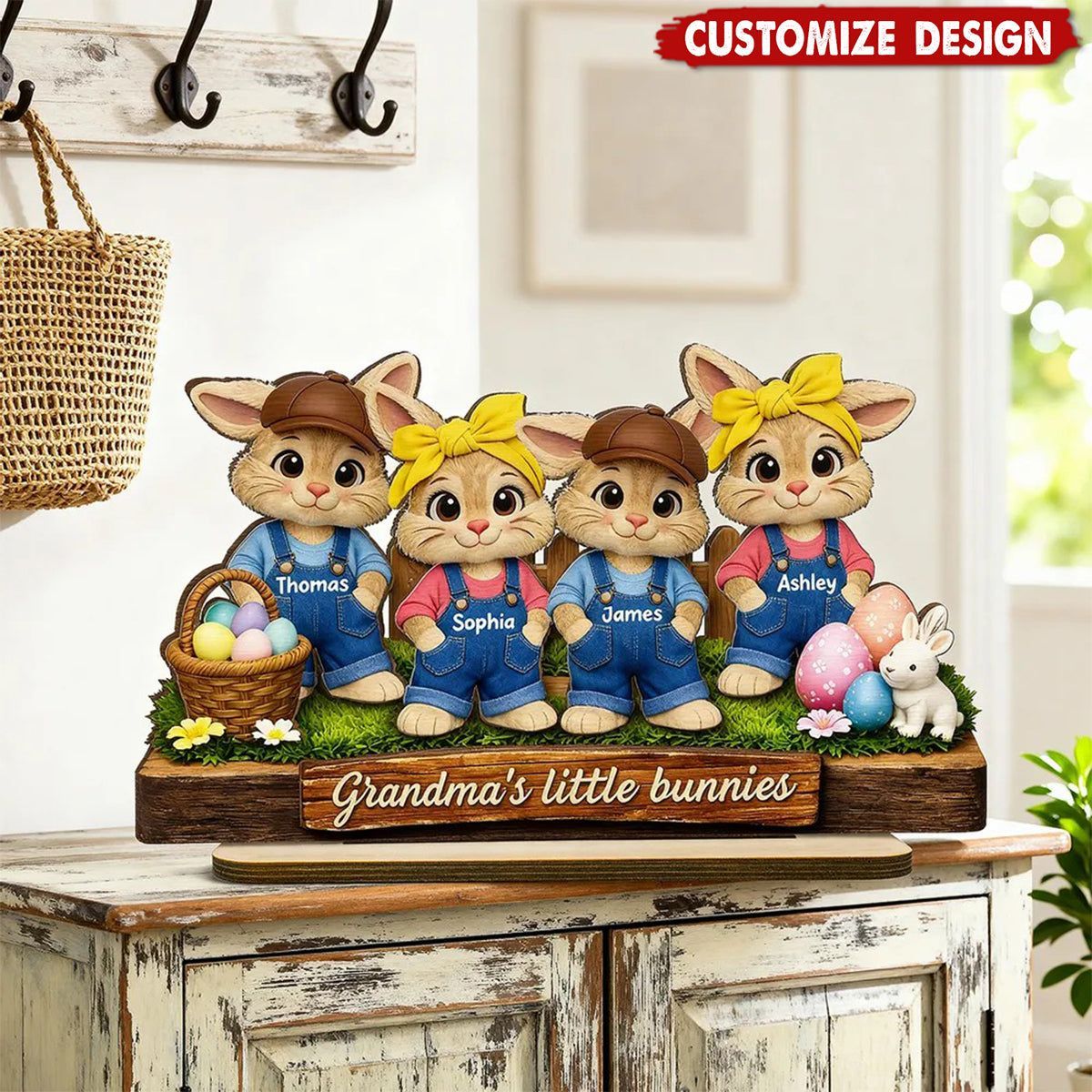 Personal isierte kleine Hasen 2-Layered Holzplatte-Oster geschenk für Oma