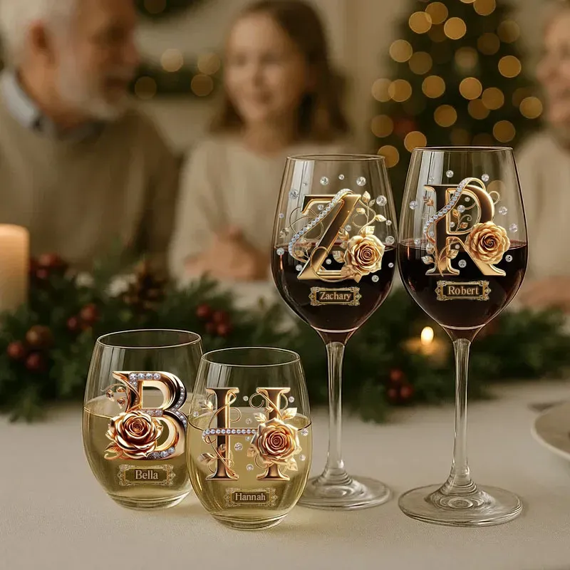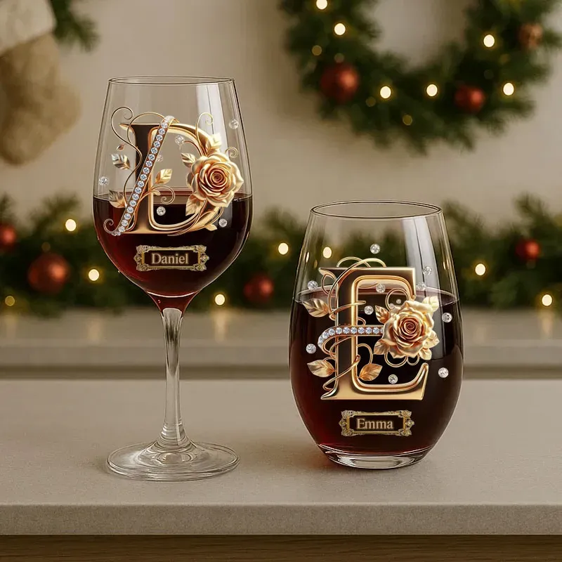 Alphabet-Initiale für Weinliebhaber – Personalisiertes Weinglas mit Weinmotiv